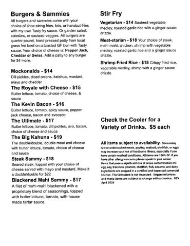 If you haven’t been to Tai Shan Farms before or it's been a while, let me explain a few things so you understand how things work here. Tai Shan is a small farm owned and run by me, Kevin. I am a one man show on my farm. I do the entire business, soup to nuts, all by myself. I’m your host, your server, the chef who preps then cooks your food, the busser who cleans the tables, the dishwasher and cashier. Since I do all the roles at once, I have a process. If you think you're helping me by clearing a table and walking into my kitchen with a stack of dishes, I assure you are not. I now have to stop my flow and take care of it which sets everything back, for everyone. The best way to help is to just sit back, relax and let me do the driving. Additionally, please don't come into my kitchen space unless invited. If you're trying to talk to me from the dinning room while I am in the kitchen area, I can't hear over you the loud exhaust fans. During nonbusiness hours I’m also the baker, farmer, mechanic, electrician, dog butler, interior designer, janitor, and carpenter just to name a few of my other duties. I offer a slow food experience in a relaxed homey atmosphere. If you’re in a hurry or don’t have patience please don’t come to my place. There are plenty of other food options that will cater to your fast food needs. My place isn’t for everyone and that’s the point. I offer a unique dining experience for those who are feeling homesick for the home cooked meal they never had. I serve comfort food, made from scratch, with love, that just happens to be 100% GF. If you’re Celiac, my place is completely safe for you. I source as much of my ingredients from Hawaii as possible. All my beef is island raised grass fed, grass finished. I use only pasture raised chicken. I use only grass fed butter, olive oil, peanut oil for baking, sautéing, and for deep frying. My menu is also mostly seed oil free, the only items that contain seed oils are the fries, tots and buns. Nothing I use contains high fructose corn syrup, artificial sweeteners or dyes. The food I make for you is the same food I make for myself, my wife and our friends. If I don’t eat it personally, I don’t serve it to my guests. I offer a couple of vegetarian options but that’s not my focus. I am not vegan friendly. Again, there are many other options around the island that cater to a vegan diet. This is NOT a good choice for people with small children as wait times can be long. If you do bring small children please don't allow them to wander around the dinning room. I'm moving fast, usually with plates of hot food with impaired vision from standing over a 500* grill. This should go without saying, but here we are.